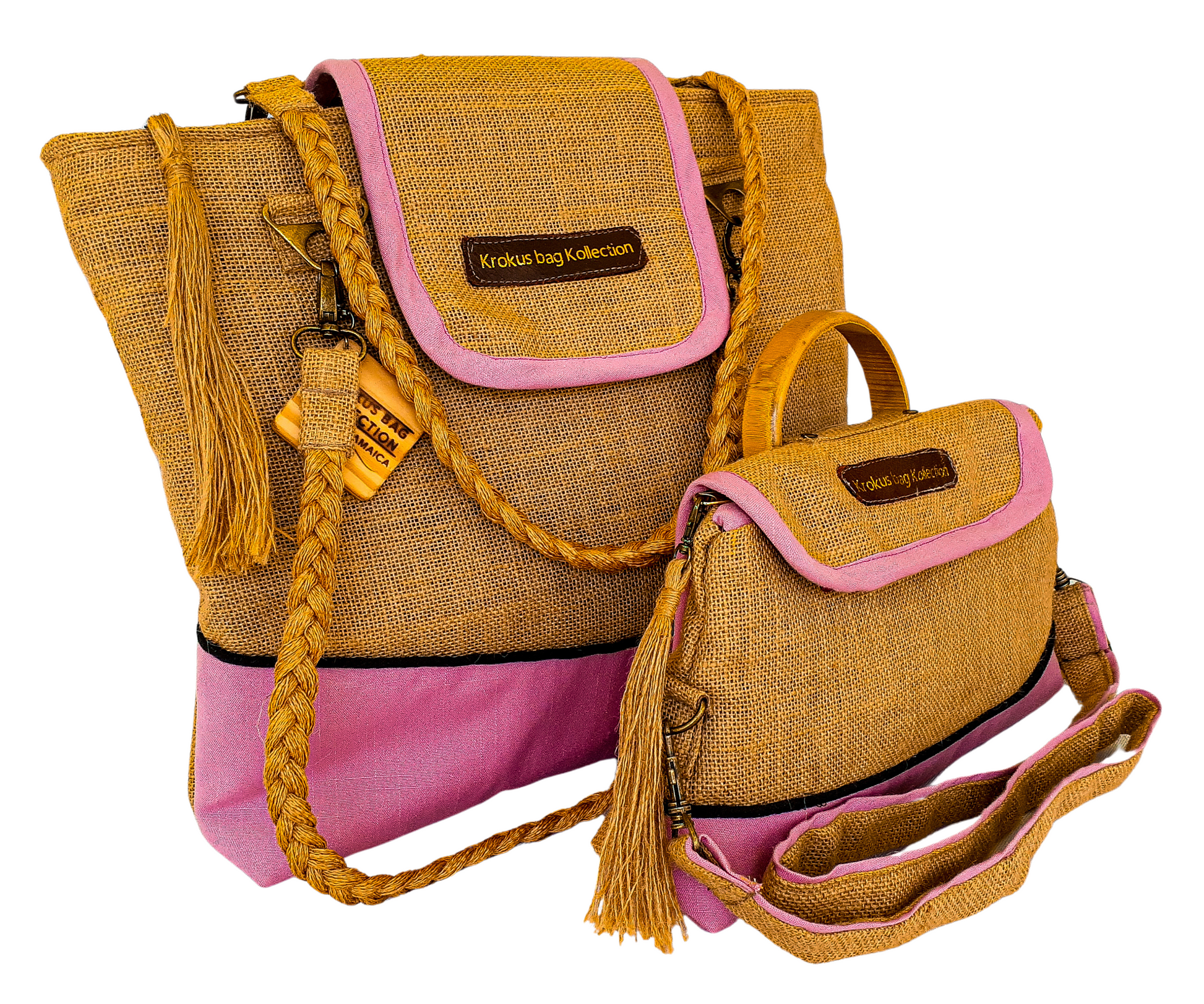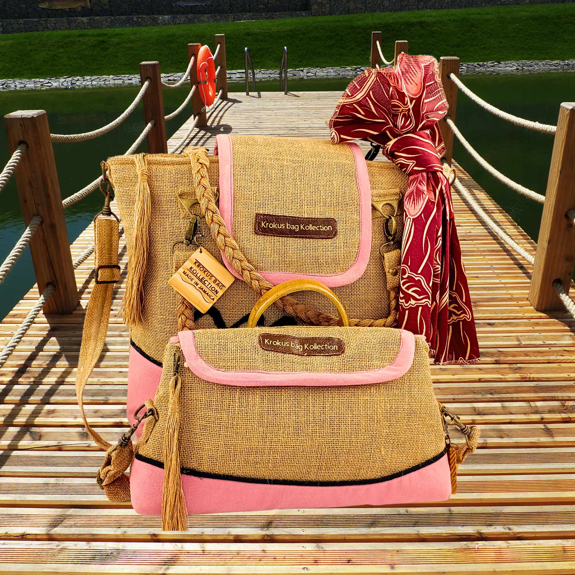 Elevate your fashion quotient with our Tote Set with Baby Pink Linen Trim a unique fusion of rustic charm and eco-conscious craftsmanship.