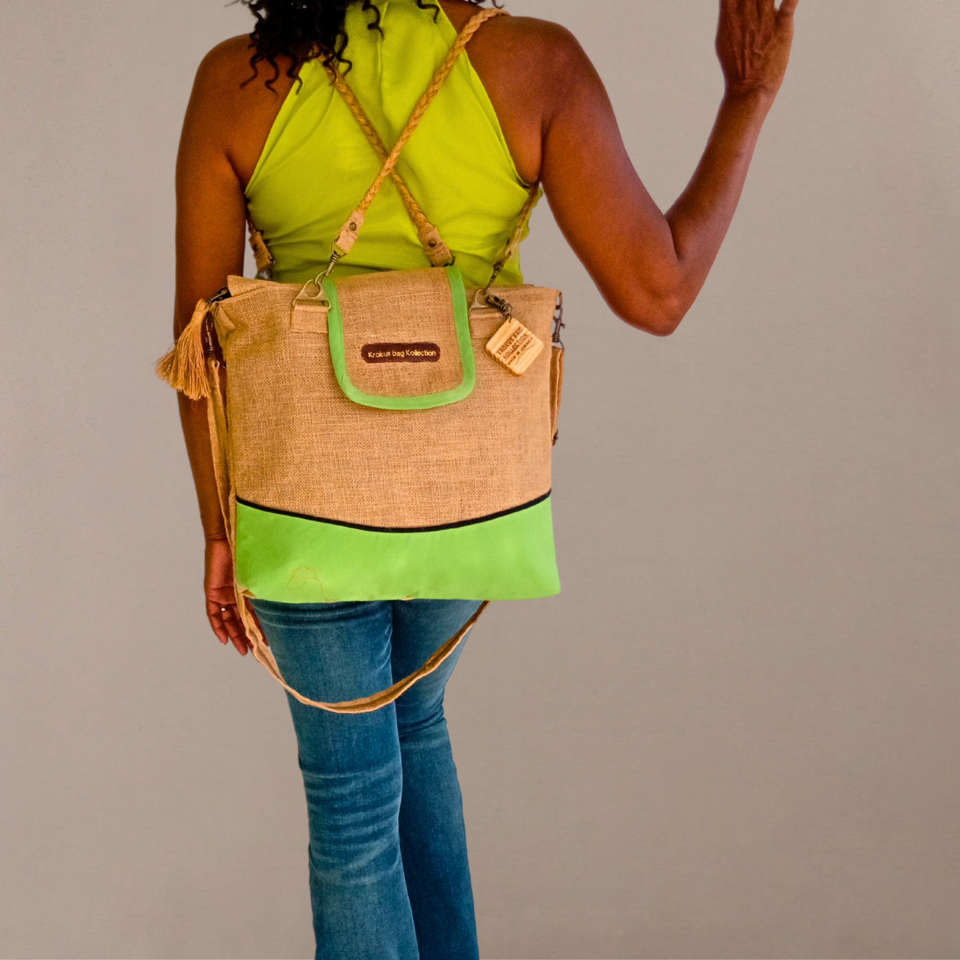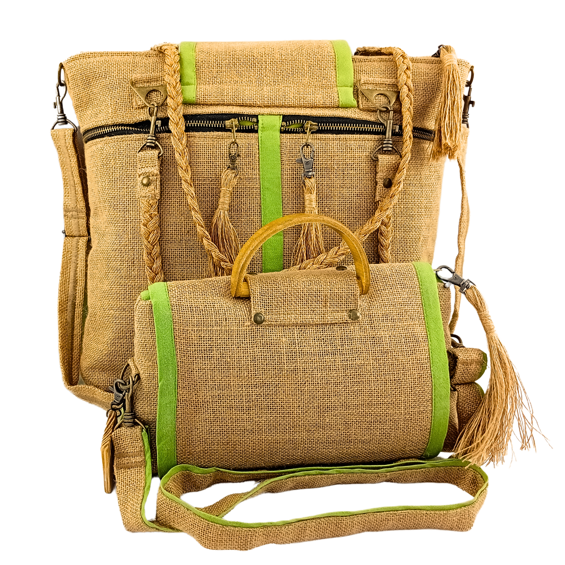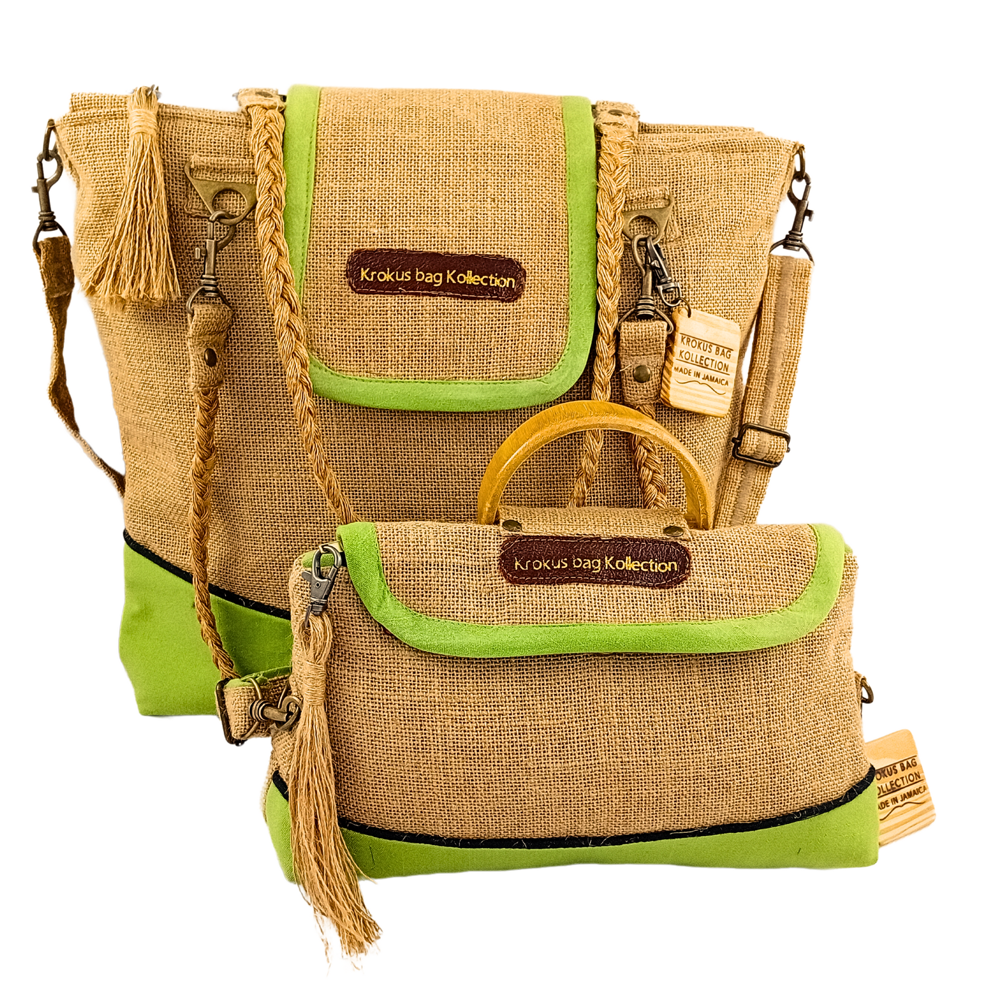 Introducing our Tote Set, Lime Green – featuring plait handles on the tote and bamboo handles on the crossbody bags. This set effortlessly combines style with sustainability. With spacious interiors and eco-friendly materials, these totes are not just accessories, but statements in conscious fashion. Elevate your carry game with this Tote Set – where fashion meets eco-consciousness.