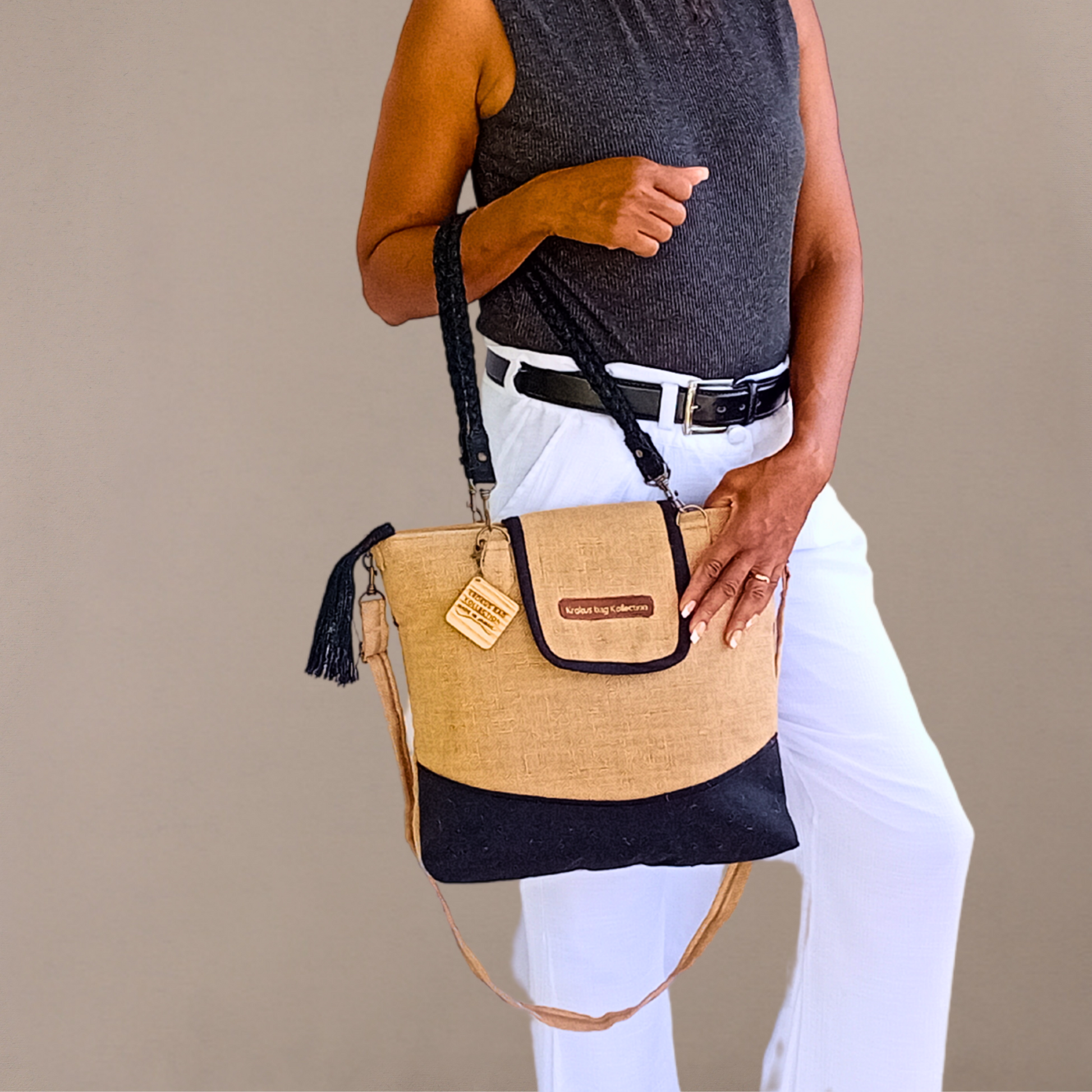Jute/Burlap is a sustainable and biodegradable fabric, making jute handbags an environmentally responsible choice. Jute is a rapidly renewable resource and has a low environmental impact compared to synthetic materials.